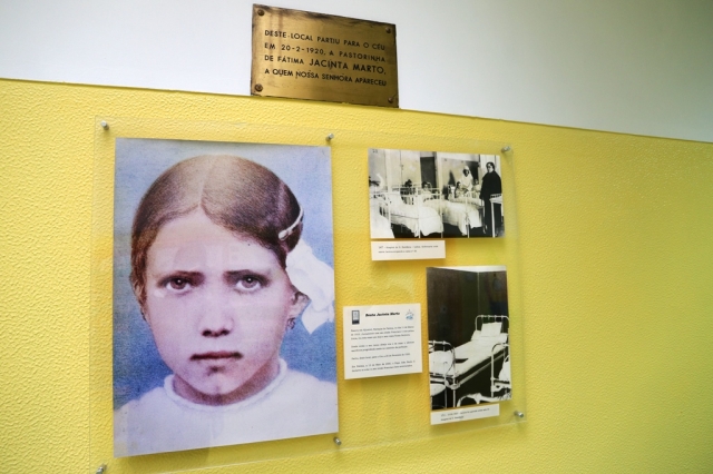 “Aos 20 dias do mês de fevereiro do ano de 1920, pelas 22,30 horas, faleceu nêste hospital, Jacinta Marto, uma das videntes de Fátima, contando 10 anos incompletos. Algumas vezes, segundo dizia, foi aqui visitada pela Virgem Santissima.